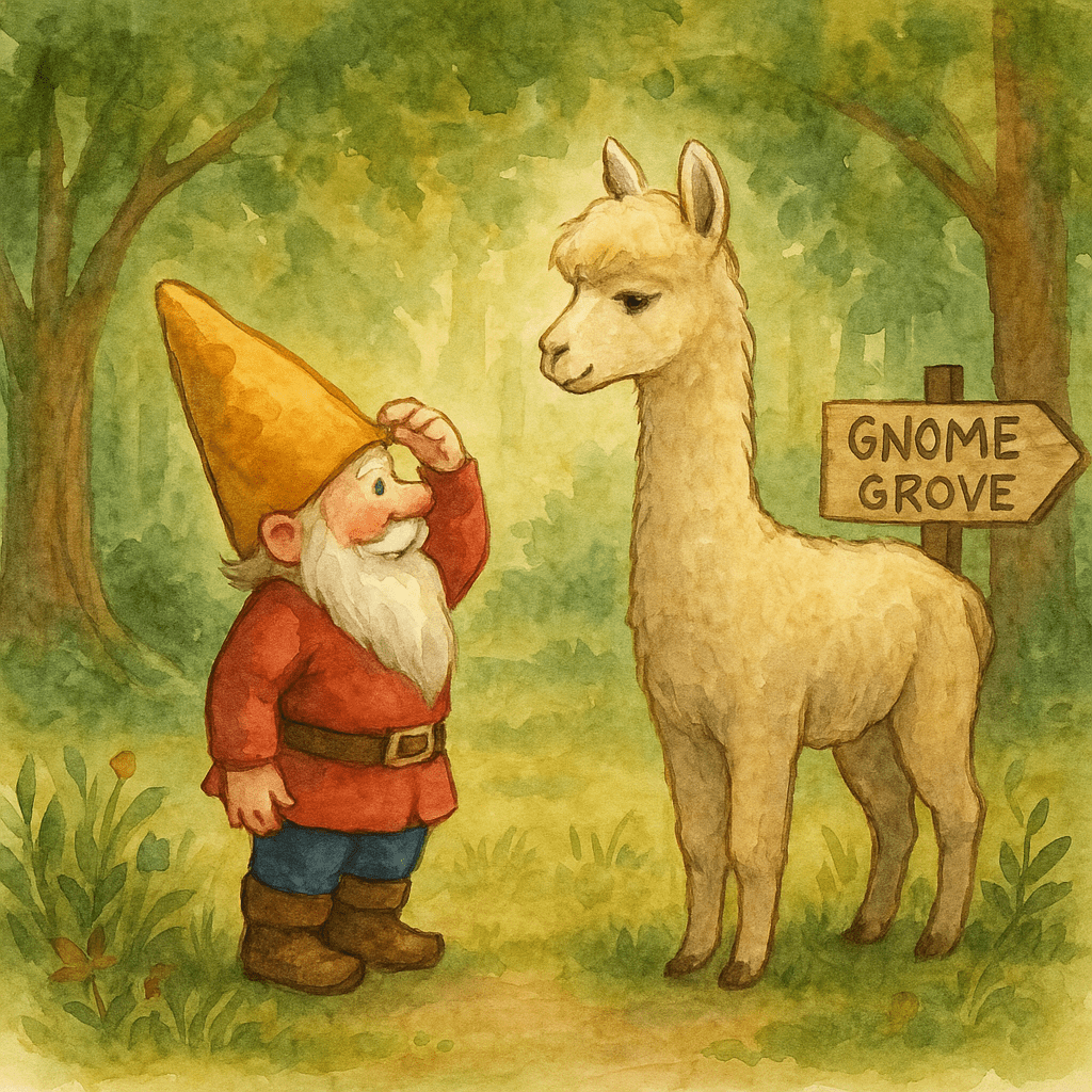 So instead of writing an alpaca story, I decided to write a gnome story with alpacas in it. Because, why not? Gnomes have opinions, alpacas have expressions, and I apparently have a soft spot for both.