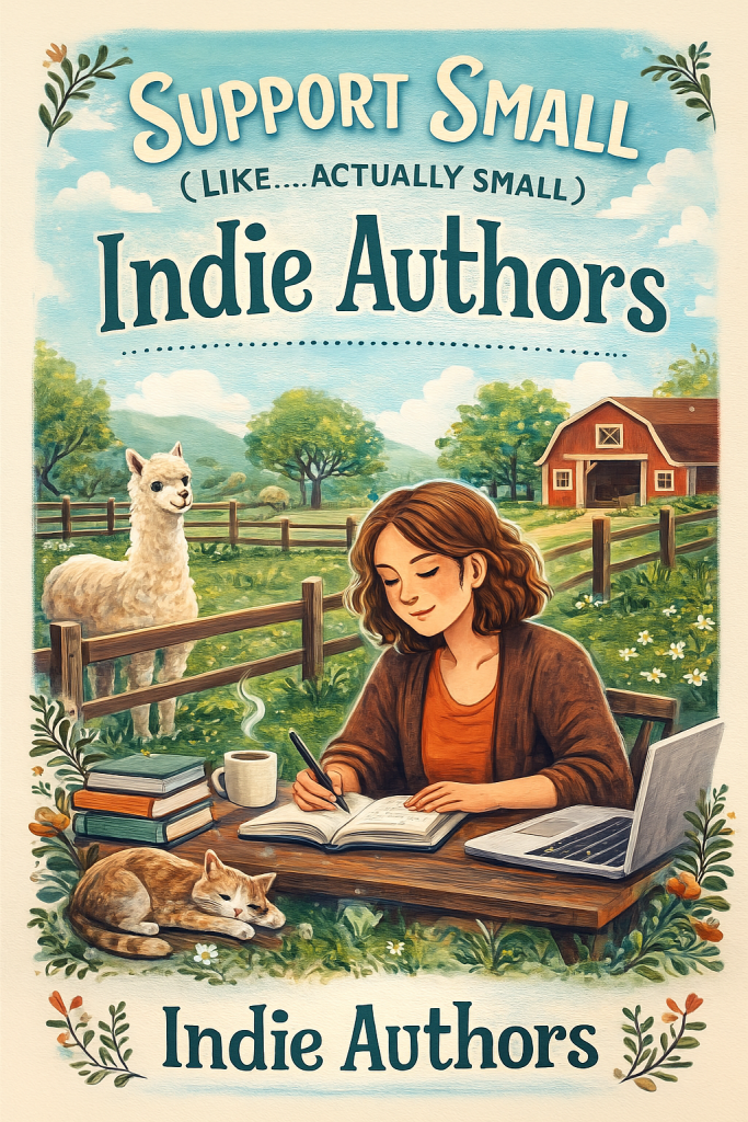 Below are a couple of links to actual small creators I know — indie authors, and yes, the alpaca farm shop (because supporting local fiber, handmade goods, and rescued animals absolutely counts).